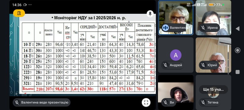 20 січня 2026 року в ліцеї відбулася педагогічна рада у форматі онлайн-зустрічі (Google Meet), під час якої було підбито підсумки роботи педагогічного колективу за І семестр 2025–2026 навчального року.
