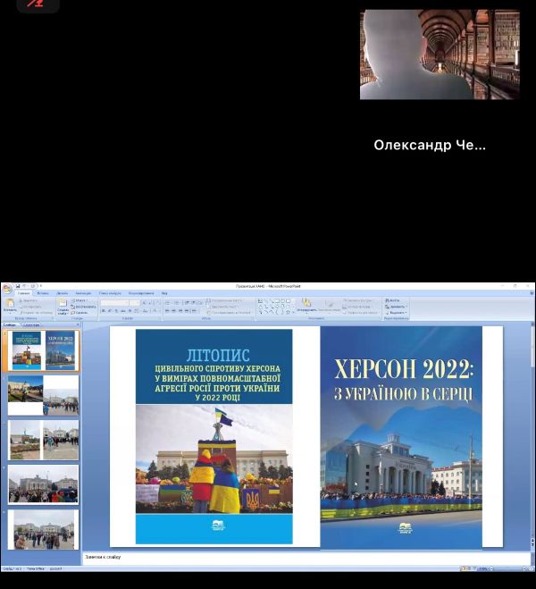 До участі у круглому столі долучилися представники ради студентського самоврядування нашого ліцею та радник, які прослухали змістовні доповіді, пісні, присвячені рідному місту, переглянули відеофільми про події окупації, визволення та сьогодення Херсона.